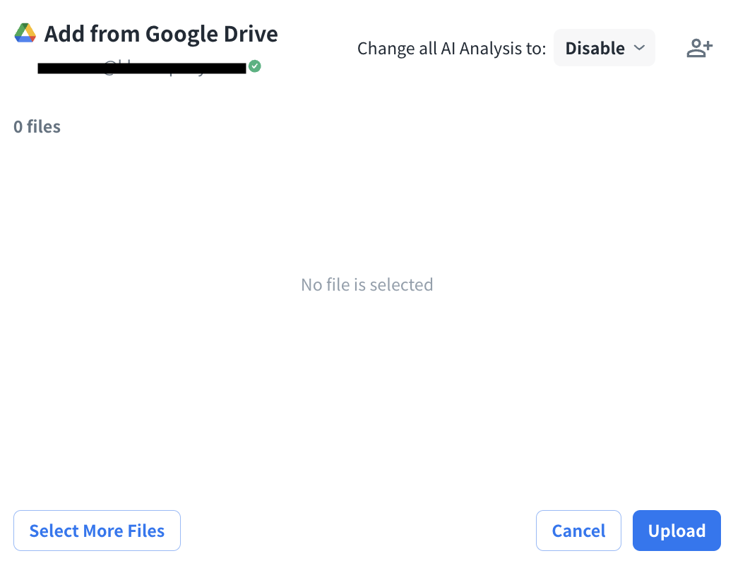 • Google Drive: Click “Google Drive” to select media and files you want to add and click the “Upload” button to upload to the space.