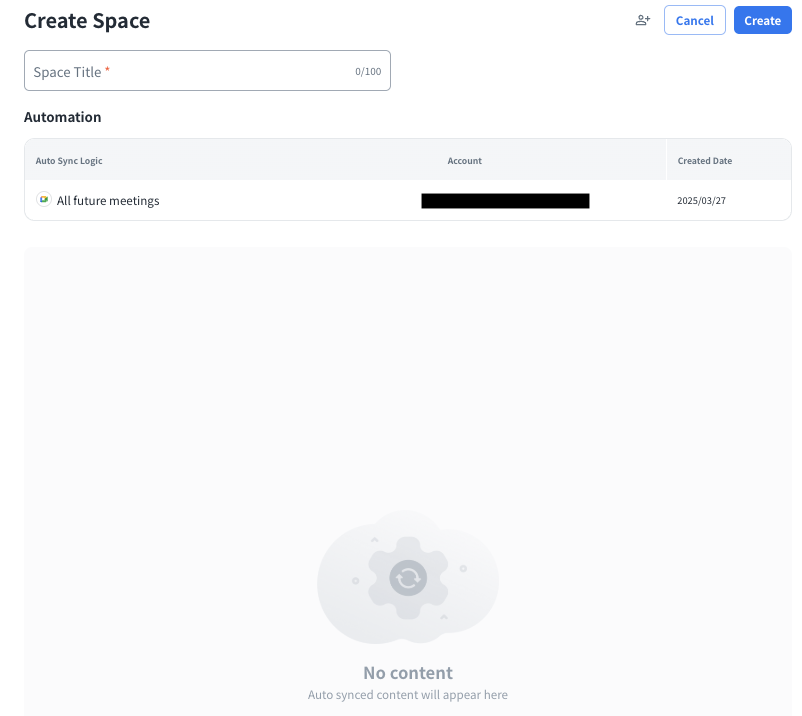 • Auto sync all future meetings: The files in your account will be automatically synced to the space.
