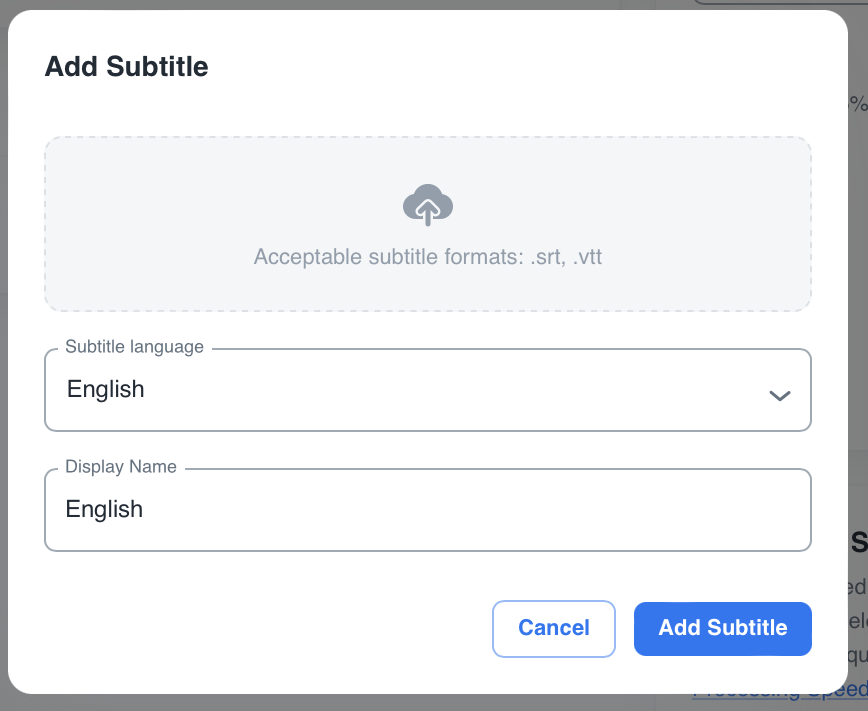 按下「新增字幕」按鈕將顯示上傳字幕文件的窗口。