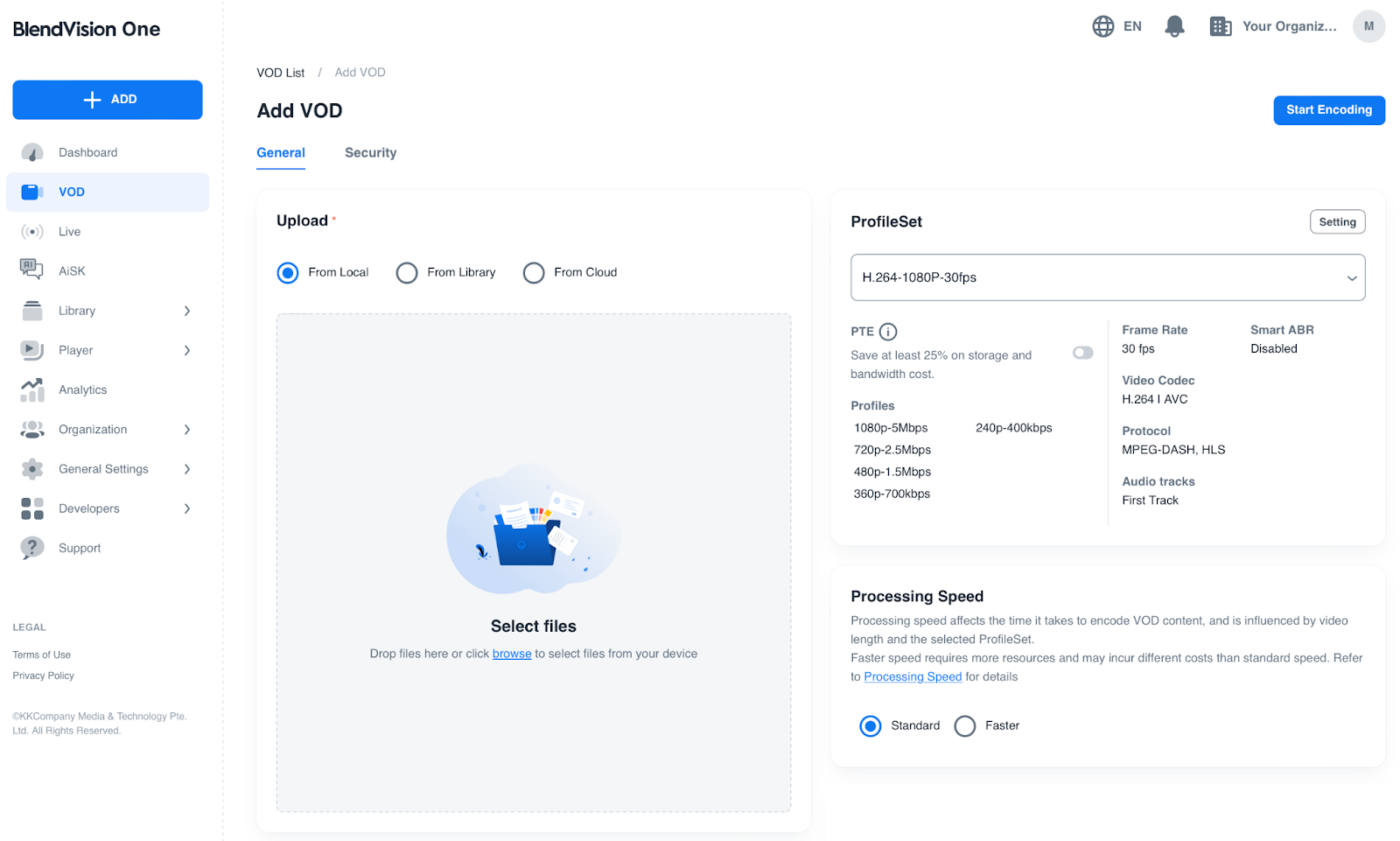在BlendVision One中,處理速度決定了VOD編碼完成的領先時間和成本。