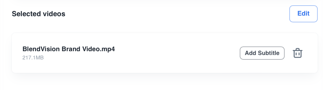 選擇/上傳源文件後,它們將顯示在「上傳」部分下的「已選視頻」列表中。