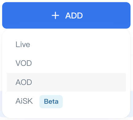 Click on the “ADD” button on the left sidebar then select “AOD”.