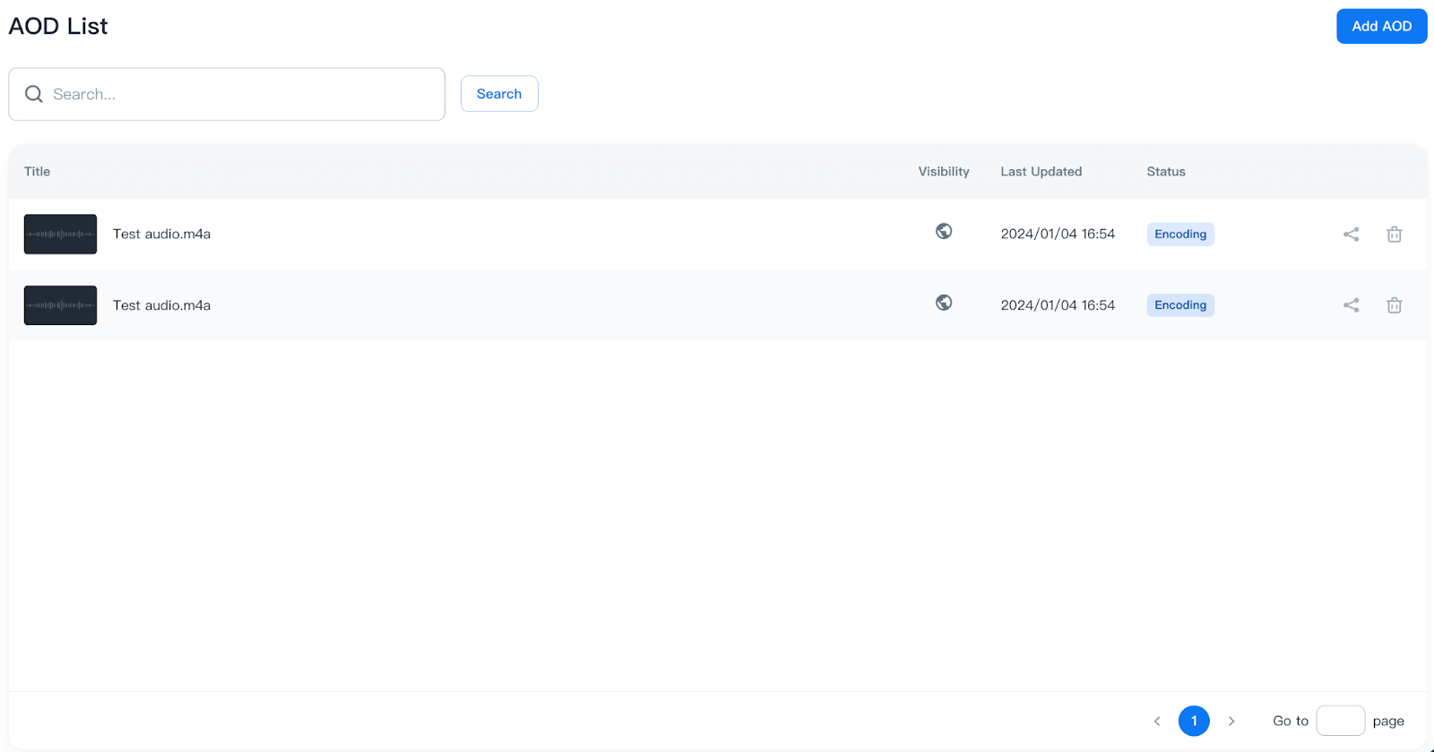 After submission, you can see the created AODs shown in the AOD List.