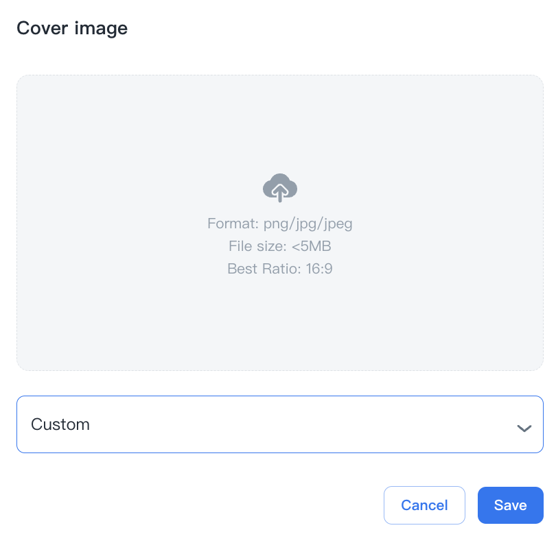 - Custom: Upload an image file from local as cover image