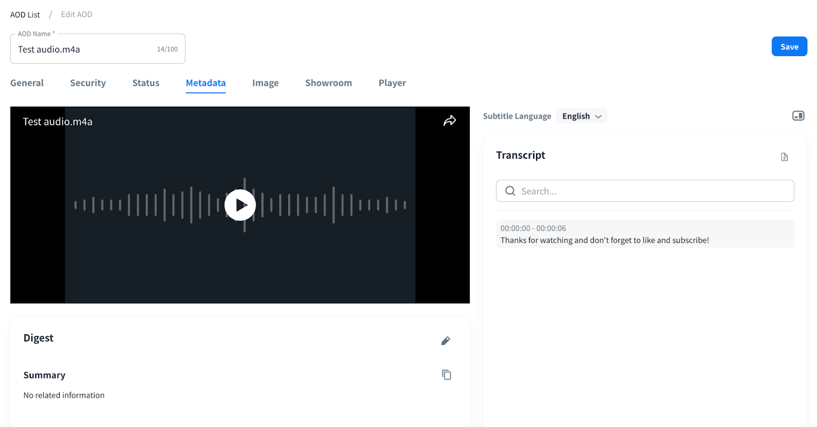 *The AOD and Subtitle cannot be deleted during Summary generation.