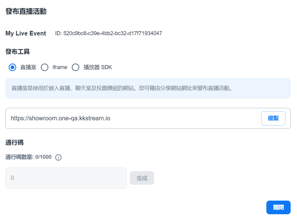 - 此功能設計用於展示室/嵌入式iframe播放器,不適用於播放器SDK解決方案。您需要在系統中開發相關功能並與播放器SDK整合。