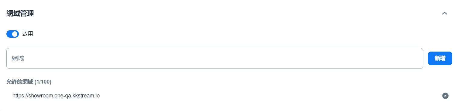 3. 啟用網域管理後,您可以在「允許的網域」列表中輕鬆新增或移除網域。